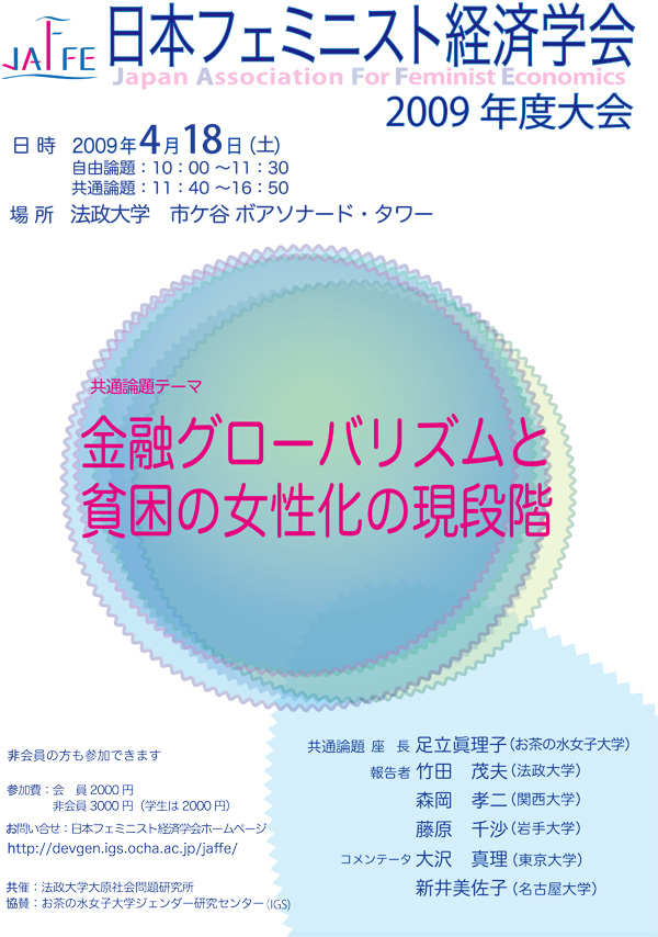 | 2004年度大会 | 経済学をジェンダー化する →設立総会プログラム →設立総会ポスター |